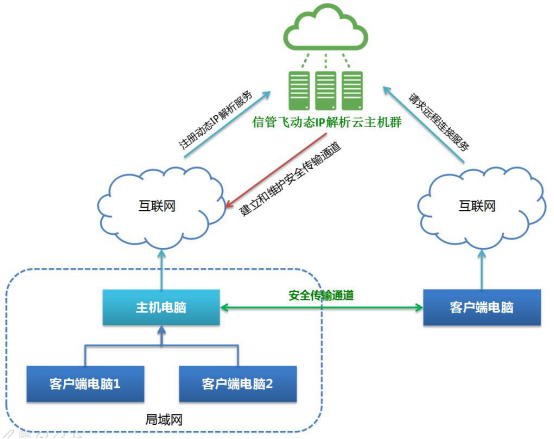 信管飛系列管理軟件(信管飛RMS、信管飛倉庫管理軟件、 信管飛出納記賬軟件、信管飛票據打印軟件、 信管飛送貨單軟件)使用都不需要聯網,數據上存儲在客戶自己的電腦,安全可靠。軟件也支持互聯網遠程(比如異地辦公)使用,但目前絕大多數客戶的電腦都沒有公網IP地址(即在互聯網的唯一地址),所以通過互聯網是無法直接訪問部署在內網的軟件數據的。部署在內網的網絡版,只能在局域網(簡單說就是電腦連接到同一個路由器)使用。目前主要有三種方式實現互聯網遠程使用: