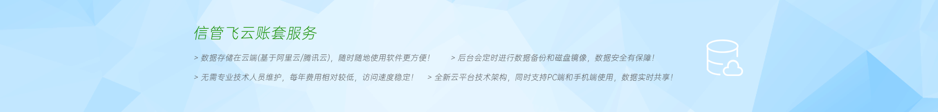 云賬套服務是亞拓軟件開發(fā)的云端數(shù)據(jù)存儲方案。客戶賬套存儲在我們的信管飛云主機上,客戶電腦只需要安裝客戶端程序,輸入云賬套服務的通行證帳號和密碼即可登錄軟件。 客戶使用云賬套服務,數(shù)據(jù)存儲在我們的云主機上,隨時隨地都可以使用,也支持手機端App應用。我們云主機后臺會定時進行數(shù)據(jù)備份和磁盤鏡像,保證數(shù)據(jù)的安全可靠使用。