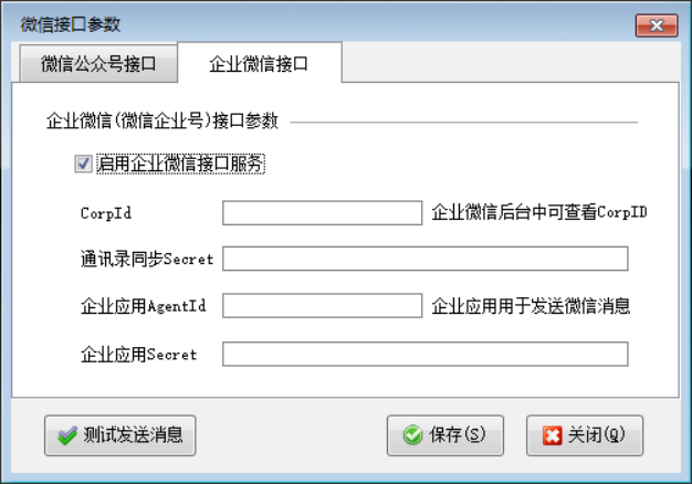 在功能導(dǎo)航窗選擇“擴(kuò)展應(yīng)用”—》“微信參數(shù)設(shè)置”,選擇“企業(yè)微信接口”,啟用并配置相關(guān)設(shè)置。然后點(diǎn)擊測試微信接口。提示測試成功,則可以開業(yè)務(wù)單據(jù)發(fā)送微信消息。