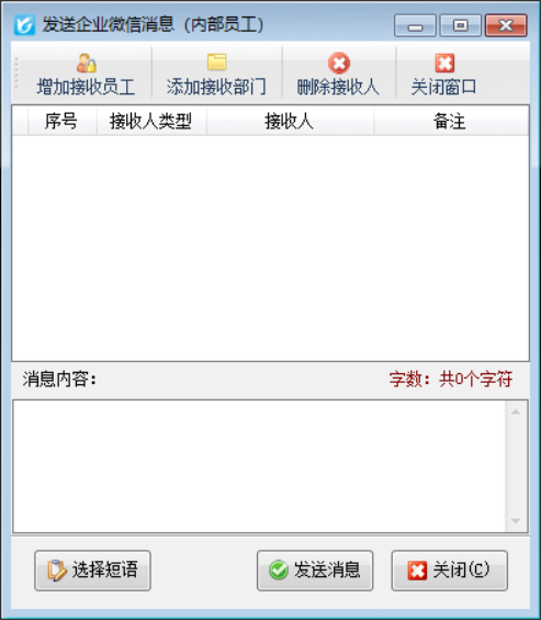 在功能導(dǎo)航窗“擴(kuò)展應(yīng)用”-》“發(fā)送微信消息”,可以直接發(fā)送企業(yè)微信消息給部門或員工,消息內(nèi)容不受限制。