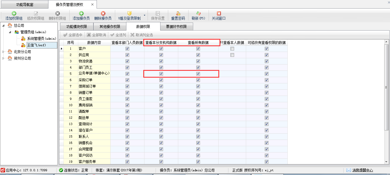 分支機(jī)構(gòu)操作員權(quán)限設(shè)置,可設(shè)置分支機(jī)構(gòu)操作員只查看本分支機(jī)構(gòu)數(shù)據(jù),也可設(shè)置查看所有數(shù)據(jù)(所有數(shù)據(jù)包括總公司及所有分支機(jī)構(gòu)的數(shù)據(jù))。