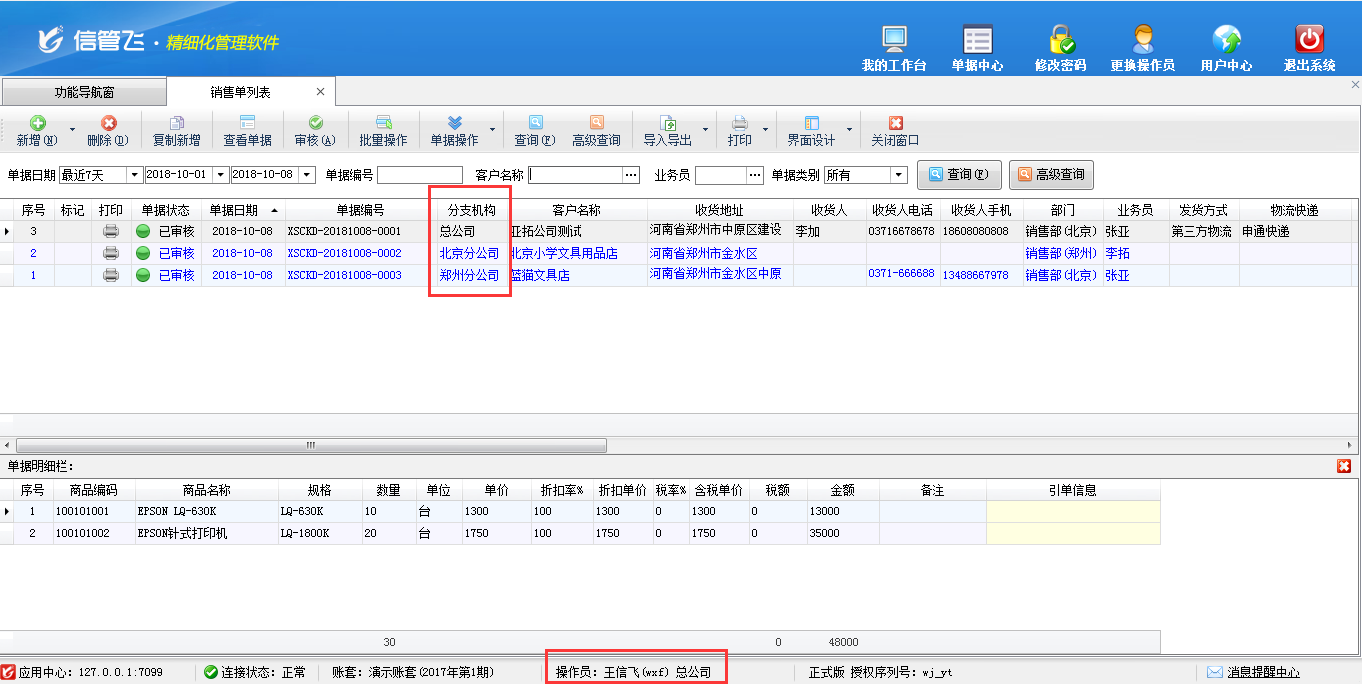 總公司操作員,可查看總公司及所有分支機(jī)構(gòu)的銷售單