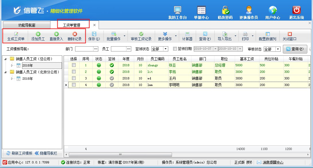工資管理功能的典型功能截圖如下: