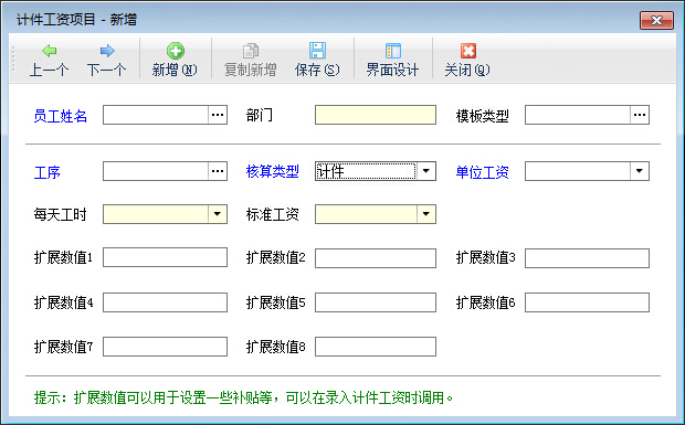 計件工資模板維護,可以自定義模板類型和結算類型