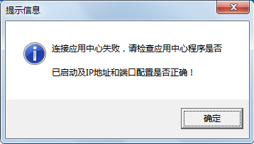 ????在登錄窗口,點“登錄”按鈕,即可登錄軟件。如果主機電腦沒有運行應用中心程序或者主機電腦的IP地址變了,軟件會彈出如下提示信息: