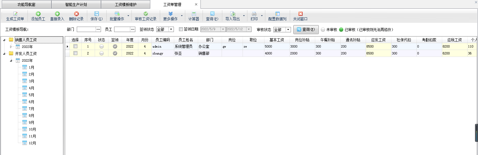 審核工資單:選擇工資記錄后,點擊“審核工資單”按鈕,可以審核相應的工資記錄。