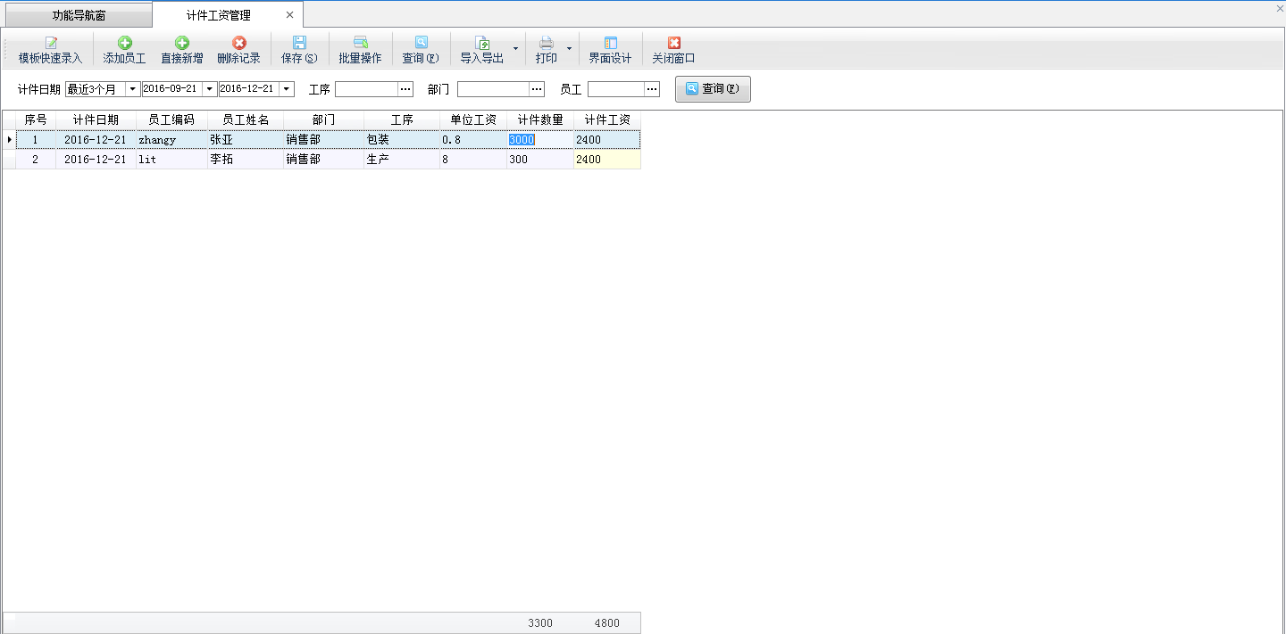查詢:可以根據計件日期、工序、部門、員工等條件進行查詢計件工資數據。