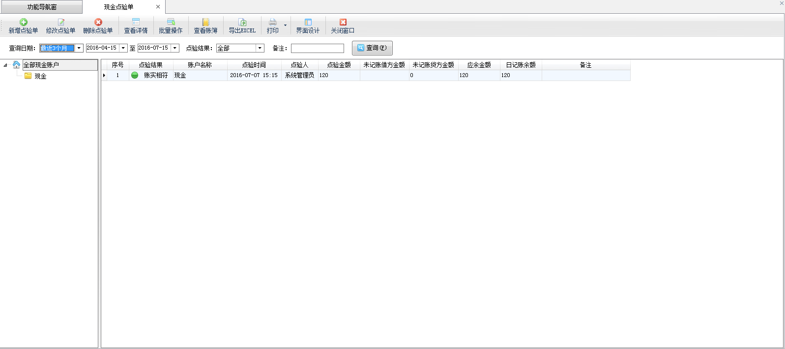 ????現(xiàn)金點(diǎn)驗(yàn)薄功能列表: