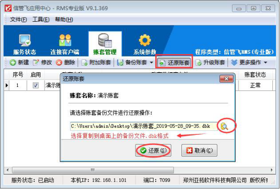 ????一、在信管飛RMS應用中心中如何對賬套進行備份?