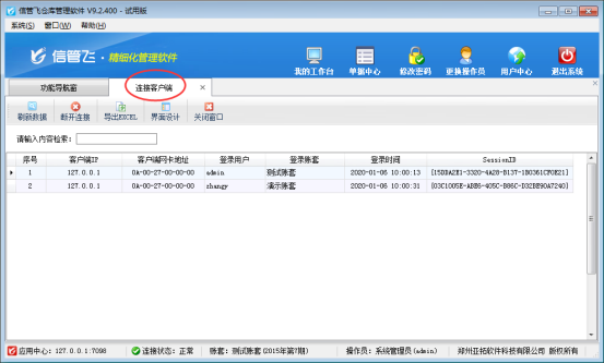 ????軟件授權服務顯示加密鎖編號,授權連接客戶端數(用戶數)以及已連接的客戶端數。授權服務為軟件的核心服務,正式使用軟件的時候必須一直插入加密鎖,拔下加密鎖即進入試用版模式(超過試用版的單據數限制就會無法保存數據)。