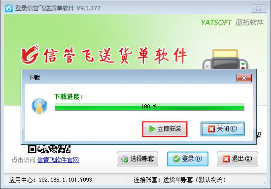 ????信管飛送貨單軟件、信管飛RMS軟件、信管飛倉庫管理軟件等都支持網絡版本(即可以多臺機器同時使用,數據共享,數據集中存儲在一臺機器上),軟件會不定期更新新版本,網絡版多臺電腦使用的時候,每次更新程序需要每臺電腦都下載最新版安裝程序進行安裝,非常麻煩。軟件支持在主機電腦的應用中心程序上指定更新安裝程序,便于客戶端登錄的時候如版本不一致會提示直接下載安裝程序。