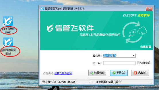 ????分別打開客戶端程序,點擊選擇賬套,分別輸入各自通行證賬號進行登錄軟件。系統會自動記憶第一次錄入的賬號和密碼,下次登錄不同軟件直接選擇桌面圖標打開登錄。