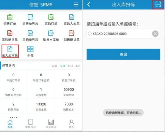 ????倉庫掃碼功能,使工作將快捷高效,接收入庫和出庫的數(shù)據通過無線設備輕松導入進銷存軟件中,節(jié)約了前后數(shù)據的校對和錄入的工作量,從本質上提高工作效率。本篇文章以“信管飛RMS專業(yè)版的銷售出庫單”為例,示范下如何對接開單和倉庫掃碼確認(文章按掃描條形碼示范)。