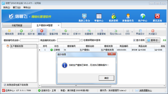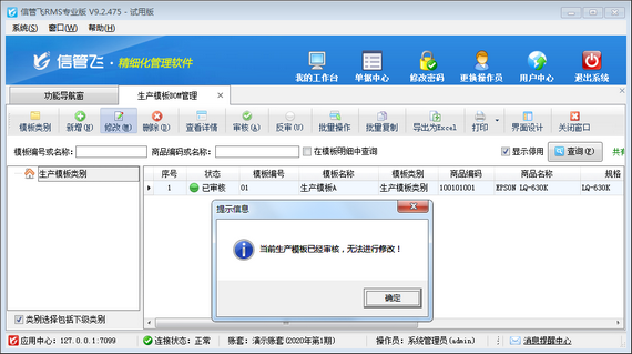 # 6.6.1 進(jìn)銷存管理軟件如何修改(刪除)已審核的生產(chǎn)模板?