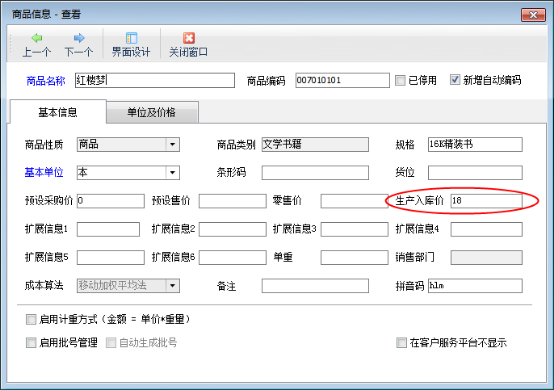 ????入庫單價(jià):進(jìn)入倉庫的成本價(jià),軟件默認(rèn)取商品信息中的“生產(chǎn)入庫價(jià)”,也可以設(shè)置為根據(jù)原料金額和直接費(fèi)用等核算出成本價(jià)。