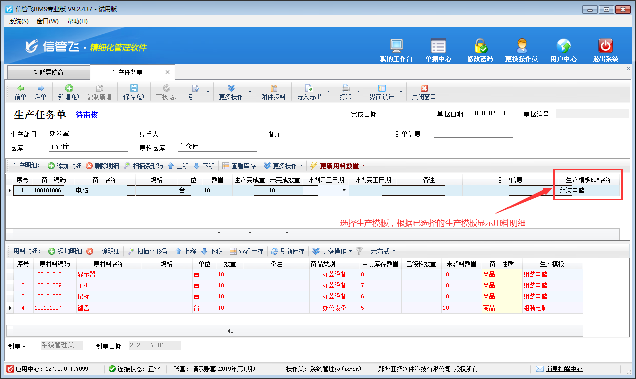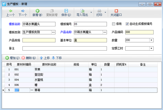 # 6.6.11 進(jìn)銷存軟件中生產(chǎn)模板的使用方法