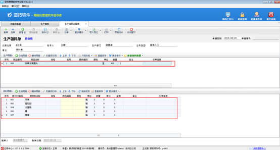 ????生產(chǎn)領(lǐng)料單是屬于生產(chǎn)管理模塊,生產(chǎn)管理模塊是屬于擴(kuò)展模塊,只有在亞拓管理軟件專業(yè)版、紅管家倉庫管理軟件專業(yè)版中才能使用,下面我們來演示一下具體的操作步驟。