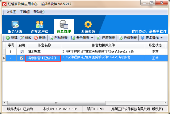 紅管家送貨單軟件、亞拓管理軟件等支持對賬套進行結轉新開賬操作。結轉新開賬一般用于年底結存新開賬,該結存操作不是必需的,如需要跨年查詢,可以不進行年結轉,軟件支持多年賬處理。 本篇文章以送貨單軟件為例,示范下如何對賬套進行結轉新開賬,新架構版本送貨單結轉新開賬功能在應用中心程序—》賬套管理—》更多操作中進行結轉,如下圖1所示:圖1 點擊“結轉新開賬”會彈出結轉新開賬界面,分成兩步操作,第一步:結轉操作提示;第二步:設置結轉截止日期。如下圖2所