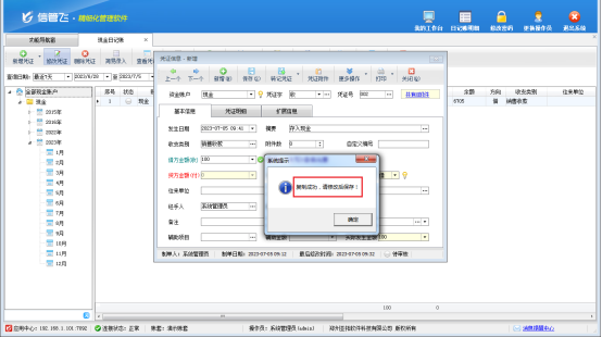 此文章相關(guān)演示視頻:如何復(fù)制新增日記賬憑證演示視頻 信管飛出納記賬軟件是一款集現(xiàn)金/銀行日記賬、應(yīng)收應(yīng)付款管理、工資管理、發(fā)票管理等為一體的綜合性財(cái)務(wù)出納管理軟件,部分用戶在登記日記賬時(shí),為了提高效率,可能需要復(fù)制之前日記賬信息進(jìn)行新增,軟件內(nèi)支持直接復(fù)制新增日記賬憑證,本篇文章以“信管飛出納軟件”為例介紹一下如何進(jìn)行復(fù)制新增憑證? 一、日記賬界面直接復(fù)制新增:在功能導(dǎo)航窗點(diǎn)擊“出納管理”—》“現(xiàn)金日記賬”打開現(xiàn)金日記賬界面,如下圖所示。