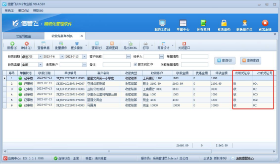 信管飛RMS標(biāo)準(zhǔn)版和專業(yè)版中包含出納管理功能,可登記現(xiàn)金、銀行日記賬,往來管理收付款結(jié)算時(shí)支持轉(zhuǎn)記出納憑證,方便后期在日記賬中直接查詢當(dāng)前資金賬戶的實(shí)時(shí)余額。如何查看收付款結(jié)算單是否轉(zhuǎn)記過出納憑證?本文以“信管飛RMS軟件專業(yè)版”為例,示范下收款結(jié)算單如何查看是否轉(zhuǎn)記憑證。 演示視頻觀看鏈接:如何查看收款結(jié)算單是否轉(zhuǎn)記出納憑證? 功能導(dǎo)航窗點(diǎn)擊“往來管理”—“收款結(jié)算單”進(jìn)入收款結(jié)算單列表界面,工具欄打開“界面設(shè)計(jì)”,勾選顯示“出納憑證字”“出納憑證