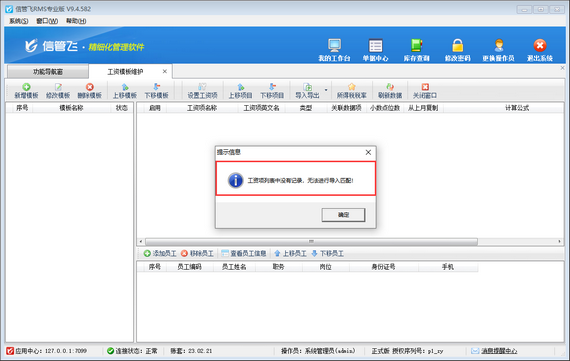 演示視頻觀看鏈接:信管飛軟件工資模板如何導(dǎo)出和導(dǎo)入演示視頻 信管飛出納記賬軟件、信管飛RMS標(biāo)準(zhǔn)版、專業(yè)版支持維護(hù)工資模板和生成工資單,可以對(duì)公司內(nèi)部員工工資進(jìn)行管理,另外可以對(duì)不同的員工設(shè)置不同的工資模板。有用戶新的一年需要重新新建賬套使用軟件,并需要復(fù)制之前賬套的工資模板。本篇文章介紹下如何將工資模板配置文件導(dǎo)出并導(dǎo)入到新建賬套內(nèi)? 第一:從之前賬套導(dǎo)出工資模板配置文件。登錄之前的賬套,在功能導(dǎo)航窗點(diǎn)擊“綜合管理”—》“工資模板維護(hù)”打開工資模板維護(hù)界面,如下圖所示。在工具欄點(diǎn)擊“導(dǎo)入導(dǎo)出”—
