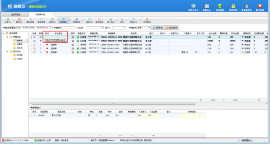 此文章相關(guān)演示視頻:如何對(duì)采購(gòu)單/銷售單列表進(jìn)行批量標(biāo)記備注演示視頻 信管飛RMS軟件、信管飛倉(cāng)庫(kù)管理軟件、信管飛送貨單軟件等都支持對(duì)采購(gòu)單列表、銷售單列表進(jìn)行標(biāo)記備注,為了提高效率,軟件內(nèi)支持批量對(duì)列表進(jìn)行標(biāo)記,以“信管飛RMS”為例介紹下如何進(jìn)行批量標(biāo)記備注? 功能導(dǎo)航窗點(diǎn)“采購(gòu)管理”—》“采購(gòu)單列表”即可進(jìn)入“采購(gòu)單列表”界面,在采購(gòu)單列表界面,點(diǎn)擊工具欄“批量操作”按鈕,進(jìn)入批量操作模式,勾選需要的單據(jù)記錄,之后點(diǎn)擊“單據(jù)操作”—》“標(biāo)記備