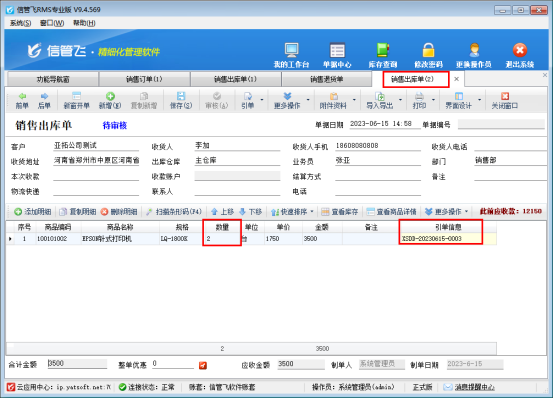 針對(duì)部分客戶銷售流程,先下銷售訂單,銷售出庫(kù)單引單銷售訂單出庫(kù),訂單變?yōu)橐淹瓿,銷售退貨后需要影響訂單的未完成數(shù)量,可以繼續(xù)出庫(kù),信管飛RMS軟件支持退貨直接引單訂單,影響訂單數(shù)量,本文示范下如何操作? 首先需啟用參數(shù),功能導(dǎo)航窗點(diǎn)擊系統(tǒng)管理—系統(tǒng)參數(shù)配置,業(yè)務(wù)參數(shù)中勾選啟用參數(shù)“銷售(采購(gòu))退貨單可引用訂單”,保存參數(shù)設(shè)置,如下圖所示: 參數(shù)設(shè)置完成后,銷售訂單商品“EPSON針式打印機(jī)”訂單數(shù)量為5,銷售出庫(kù)單引用此訂單出庫(kù)5個(gè),訂單執(zhí)行狀態(tài)變?yōu)?
