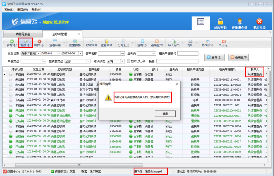 信管飛送貨單軟件是集銷售開單、打印送貨單、管理應(yīng)收款一體的軟件,軟件支持直接新增應(yīng)收款,比如期初應(yīng)收,軟件可設(shè)置多個(gè)操作員,為避免操作員誤修改其他人員增加的應(yīng)收款,可設(shè)置操作員權(quán)限進(jìn)行控制。本文以“信管飛送貨單軟件”為例進(jìn)行示范。 在功能導(dǎo)航窗點(diǎn)擊“系統(tǒng)管理”—“操作員及授權(quán)”,在操作員及授權(quán)界面,選擇操作員“張亞”,打開其他操作權(quán)限,取消勾選權(quán)限“可修改其他人員錄入的應(yīng)收款”,然后保存設(shè)置,如下圖所示: 使用操作員“張亞”登錄軟件,打開“業(yè)務(wù)處理”
