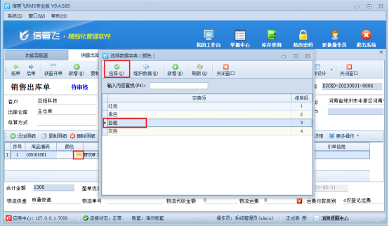 此文章相關(guān)演示視頻:如何使用維護數(shù)據(jù)字典 信管飛RMS軟件支持把一列常見內(nèi)容可提前維護到一個數(shù)據(jù)字典中,方便開單時候直接選擇錄入,例如“顏色”,可以先把所有顏色屬性維護在數(shù)據(jù)字典中,開單直接使用。本文示范下如何操作? 在功能導(dǎo)航欄點擊銷售管理---打開銷售出庫單,在開單界面點擊界面設(shè)計,勾選擴展信息并自定義列名為“顏色”,取值方式選擇“數(shù)據(jù)字典”,如圖所示: “取值設(shè)置”內(nèi)置有多種數(shù)據(jù)字典選擇,可以新增