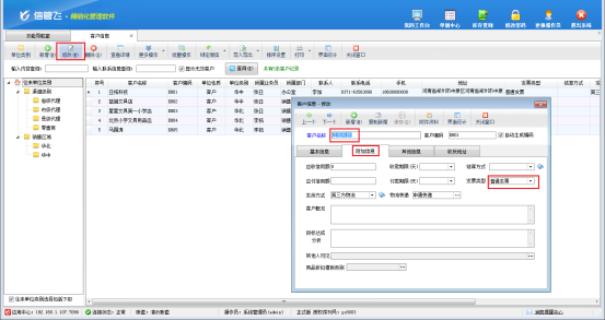 此文章相關(guān)演示視頻:信管飛RMS軟件中如何設(shè)置不同客戶的默認(rèn)發(fā)票類型演示視頻 信管飛RMS軟件支持開銷售單界面選擇發(fā)票類型,可以根據(jù)實際需要選擇不同的開發(fā)票方式。在使用過程中,不同客戶需要的發(fā)票類型可能會不一樣,為了提高開單效率,有時需要對不同的客戶設(shè)置默認(rèn)的發(fā)票類型,方便開單選擇客戶之后直接進(jìn)行調(diào)取,本篇文章以信管飛RMS軟件為例介紹一下如何設(shè)置? 功能導(dǎo)航窗點擊“基礎(chǔ)資料”—》“客戶信息”打開客戶
