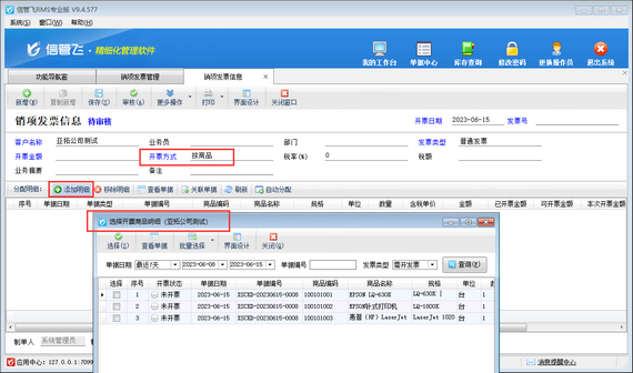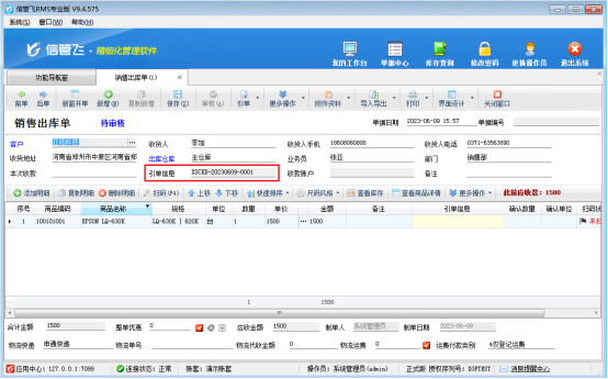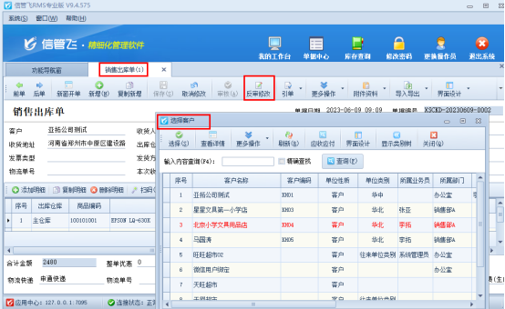 信管飛RMS軟件、信管飛送貨單軟件、信管飛倉庫管理軟件等在開銷售單時客戶名稱可以直接輸入,也可以通過選擇錄入,開單保存審核后,之前版本不允許修改往來單位名稱,造成客戶名稱輸入錯誤后只能重新開單,最新版已更改為審核后允許修改往來單位名稱和倉庫,如下圖所示:【注意】 修改往來單位名稱和倉庫后,對應(yīng)的應(yīng)收應(yīng)付款記錄和倉庫庫存會自動更新。 應(yīng)收款管理中開對應(yīng)結(jié)算單的銷售出庫單不允許反審修改,需要修改先紅沖對應(yīng)的結(jié)算單記錄。 需要使用此