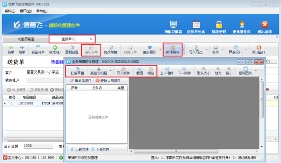 此文章相關(guān)演示視頻:如何啟用附件資料管理功能? 信管飛軟件在保存單據(jù)后可把單據(jù)或者憑證對應(yīng)的附件資料進(jìn)行導(dǎo)入,支持圖片、Excel等格式,對于圖片形式,軟件導(dǎo)入附件資料新增加“截圖”功能,可直接截圖電腦桌面上的任意處作為圖片進(jìn)行直接導(dǎo)入,本文介紹信管飛送貨單軟件如何使用附件資料功能。 在功能導(dǎo)航窗點擊“系統(tǒng)管理”----“系統(tǒng)參數(shù)配置”----“業(yè)務(wù)參數(shù)”勾選送貨單附件資料功能定制,保存設(shè)置。如下圖所示: