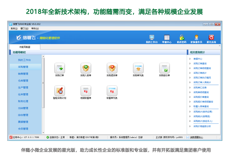 目前信管飛軟件產品有信管飛出納管理軟件,信管飛倉庫管理軟件,信管飛送貨單軟件,票據打印軟件等針對性較強的業務管理軟件,也有整合企業內部全部業務的ERP軟件——信管飛RMS管理軟件,可以滿足企業各個發展階段的不同需求。