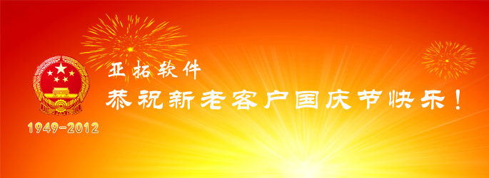 按照國務院有關中秋國慶假期安排,亞拓軟件9月30日至10月7日放假調休,共8天,10月8日正常上班。屆時,我公司售后技術支持QQ和熱線電話在9月30日、10月1日、2日、3日、4日、5日、6日暫停服務(在此期間如有問題,請撥打我們提供的技術人員手機),10月7日提供技術支持。 祝大家國慶節(jié)愉快!全家幸福!