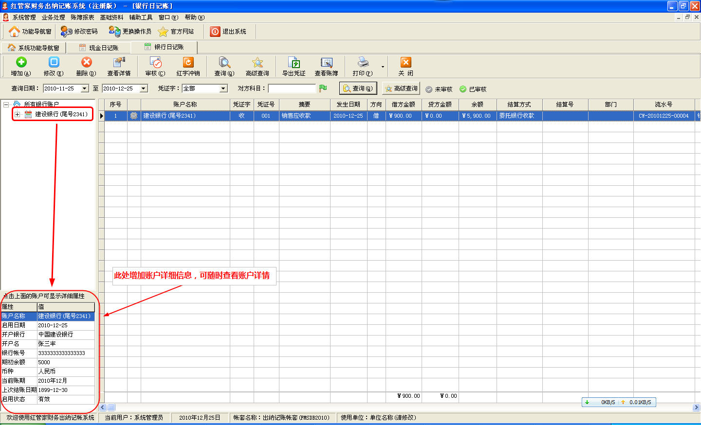 出納軟件更新: 亞拓軟件最新發布《紅管家財務出納記賬系統》發布V3.4,這個版本中我們增加了掃描和導入憑證附件(相當于手工粘貼單據)、按照核算項目統計、日記賬列表查看賬戶詳情等功能,使之更符合客戶需求。 下載地址:http://www.yatsoft.com/download/FPSetup.exe更新日期:2010.12.25程序版本: V3.4(B