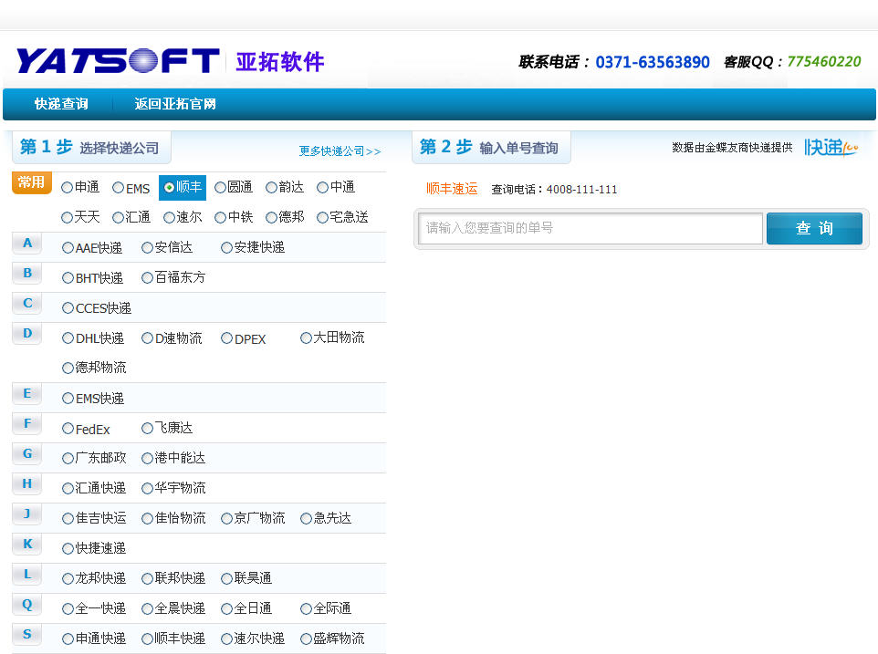 為了方便大家跟蹤我公司軟件產(chǎn)品配送情況,亞拓軟件官網(wǎng)增加快遞物流單查詢功能。我們非常理解大家購買產(chǎn)品后急切等待的心情,正如我們在淘寶網(wǎng)站上購買一件心意的寶貝一樣,有時還夾雜著一種不安的心情,擔心貨是否已經(jīng)發(fā)出、不會有問題吧、多長時間能到,時不時的會到物流網(wǎng)站上查看一下。 我們推出的這個快遞單查詢功能,直接接駁各大物流網(wǎng)站數(shù)據(jù),不需要輸入驗證碼,一站