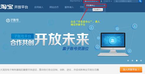 (1)訪問淘寶開放平臺網頁(http://open.taobao.com/index.htm)