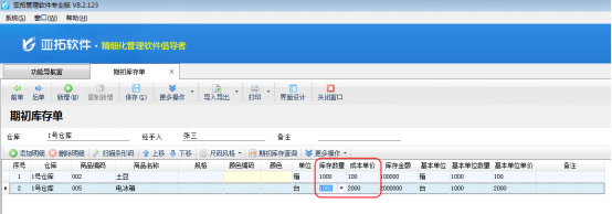 登錄亞拓管理軟件,在功能導航窗,點“基礎資料”—》“期初建賬”,然后點“期初庫存錄入”,進入“期初庫存單”可錄入期初商品庫存(有期初庫存的倉庫和商品,需要提前在“基礎資料”錄入“倉庫信息”、“商品信息”)!期初庫存單”上面填寫商品庫存數量、成本單價等信息后點擊“保存”按鈕。如圖下圖所示: