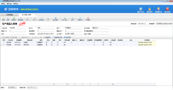 在功能導航窗,點“生產管理”—》“生產成品入庫”,即可進入生產成品入庫單界面,如下圖所示: