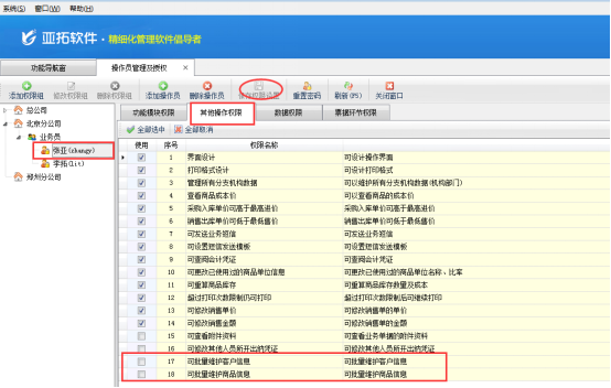 批量維護客戶資料需要操作員有操作權限,如何設置操作員有批量維護客戶信息的權限,操作步驟如下:系統管理員登錄軟件,打開“系統管理”→“操作員及授權”,選擇要添加權限的操作員,打開“其他操作權限”勾選上要選擇的權限,保存權限設置。具體如圖1所示: