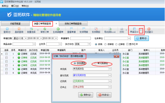 歡迎下載試用可自定義訂單執(zhí)行狀態(tài)顏色的亞拓軟件:亞拓管理軟件