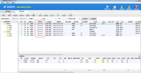 登錄軟件,在功能導(dǎo)航窗點(diǎn)“采購(gòu)管理”—》“采購(gòu)單列表”即可進(jìn)入“采購(gòu)單列表”界面,如圖1所示,系統(tǒng)默認(rèn)的日期格式是“YYYY-MM-DD”格式顯示的。