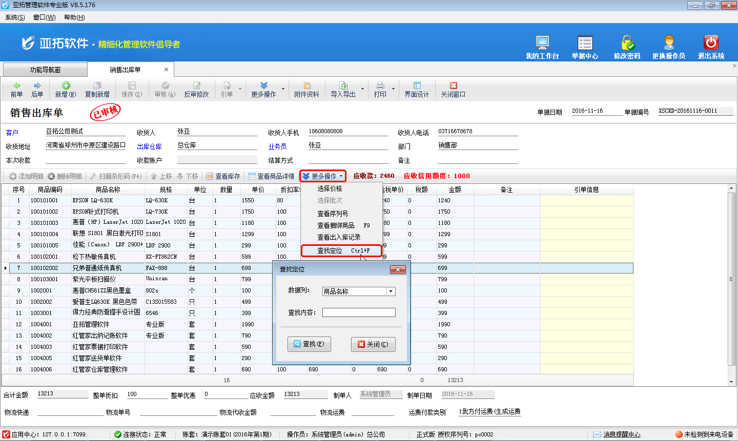 亞拓管理軟件(精細(xì)化管理軟件、進銷存管理軟件、記賬軟件)及紅管家倉庫管理軟件(庫存管理軟件)業(yè)務(wù)單據(jù)明細(xì)內(nèi)支持查找定位功能,可以快速定位單據(jù)明細(xì)內(nèi)滿足條件的明細(xì)記錄,本篇文章以亞拓管理軟件為例詳細(xì)介紹下業(yè)務(wù)單據(jù)明細(xì)內(nèi)查找定位功能如何使用。