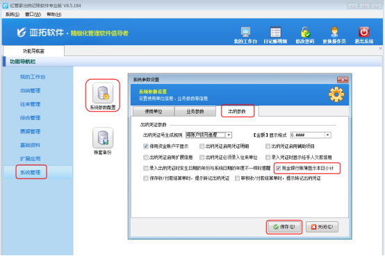 在功能導(dǎo)航窗點(diǎn)擊“系統(tǒng)管理”——》“系統(tǒng)參數(shù)配置”即可打開(kāi)“系統(tǒng)參數(shù)設(shè)置”界面,點(diǎn)擊“出納參數(shù)”,系統(tǒng)默認(rèn)勾選“現(xiàn)金銀行賬簿顯示本日小計(jì)”參數(shù),如圖1所示。