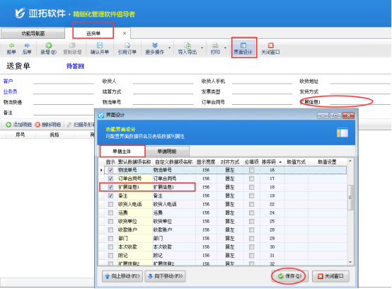 亞拓軟件下的送貨單軟件、亞拓管理軟件等最新版本增加在明細列表中可以顯示單據主體項的擴展信息。我們以送貨單軟件為例,示范下如何設置在送貨單的明細對賬單上顯示單據主體的擴展信息?