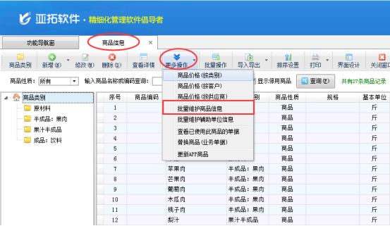 亞拓管理軟件紅管家送貨單軟件紅管家倉庫管理軟件等支持批量維護商品信息,可批量維護商品信息的價格、規格等信息。可以按照商品類別進行分類維護。