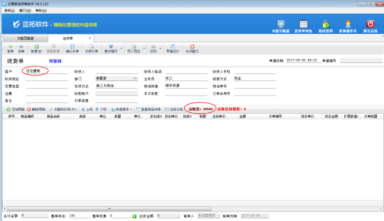 配置保存后,在功能導(dǎo)航窗點擊“業(yè)務(wù)處理”—》“新開送貨單”,在新增送貨單界面選擇客戶名稱后,此時可以看到單據(jù)明細上方會顯示這個客戶的應(yīng)收款,即客戶的欠款,如下圖2所示。