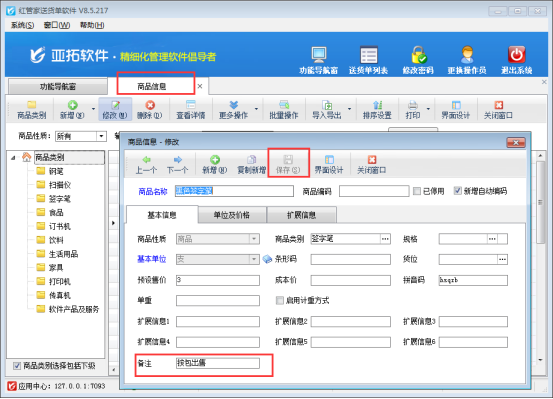 紅管家送貨單軟件、亞拓管理軟件、紅管家倉庫管理軟件都支持管理商品信息,支持開單后直接選擇提前維護好的商品信息資料,有的商品存在商品備注信息,本文章介紹如何在開單的時候選擇商品后把商品信息中的備注信息直接獲取過來。不需再在開單時候再次輸入。