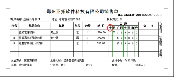 信管飛送貨單軟件、信管飛倉庫管理軟件及亞拓管理軟件等都支持開單打印單據(jù),軟件內(nèi)置了十幾種打印格式模版,同時支持自定義打印格式模版,本篇文章我們以亞拓管理軟件為例詳細介紹一下打印模版中如何設(shè)置財務(wù)單元格顯示位數(shù)?