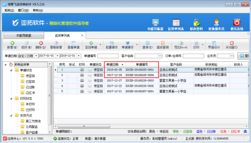 信管飛送貨單軟件、亞拓管理軟件、信管飛倉庫管理軟件等都支持開單自動保存單據(jù)編號,為了更便于區(qū)分日期時間段內(nèi)多數(shù)單據(jù)。軟件支持設(shè)置單據(jù)編號的流水號遞增規(guī)則,支持設(shè)置所有單據(jù)統(tǒng)一流水號和各類單據(jù)按各自流水號遞增(默認各類單據(jù)按各自流水號遞增)。